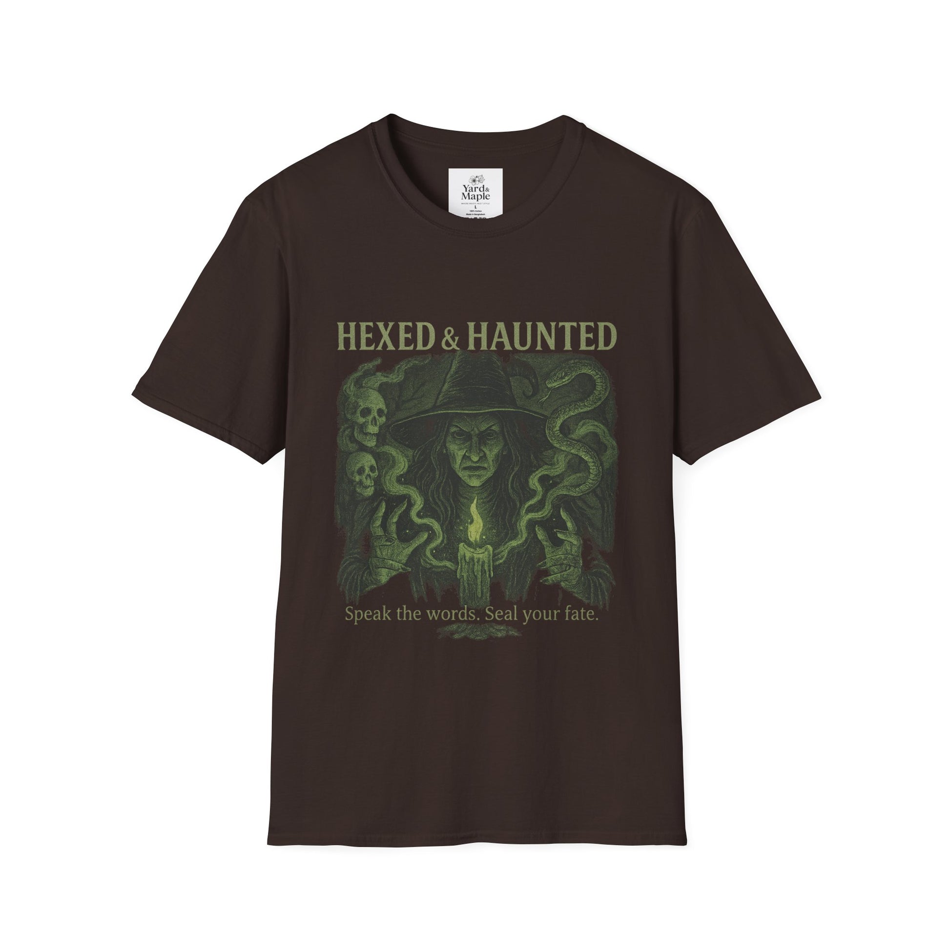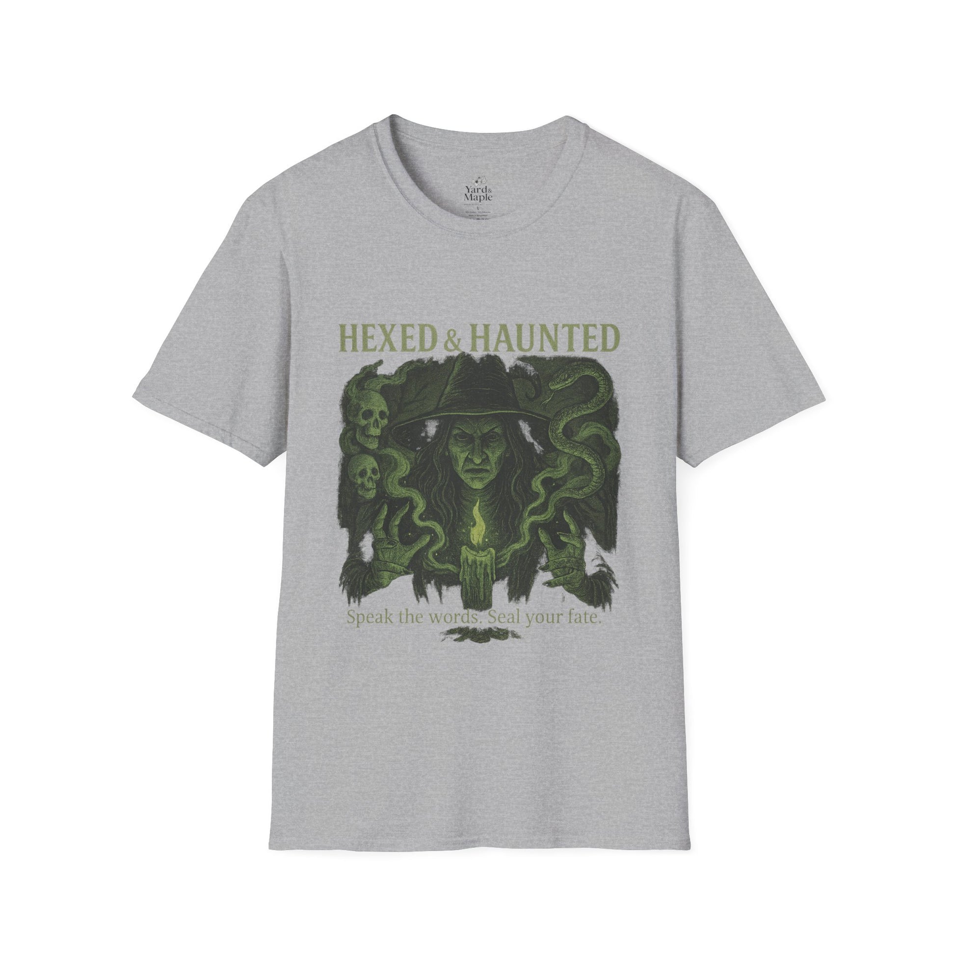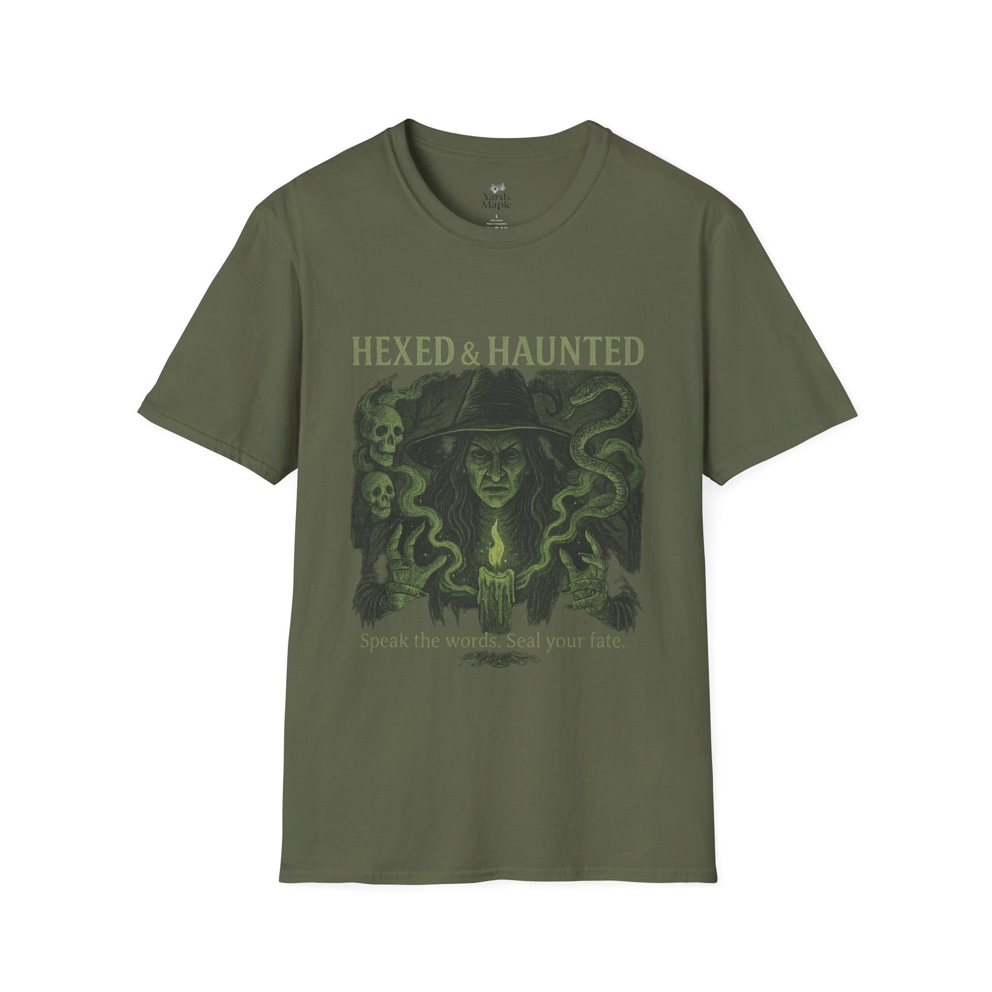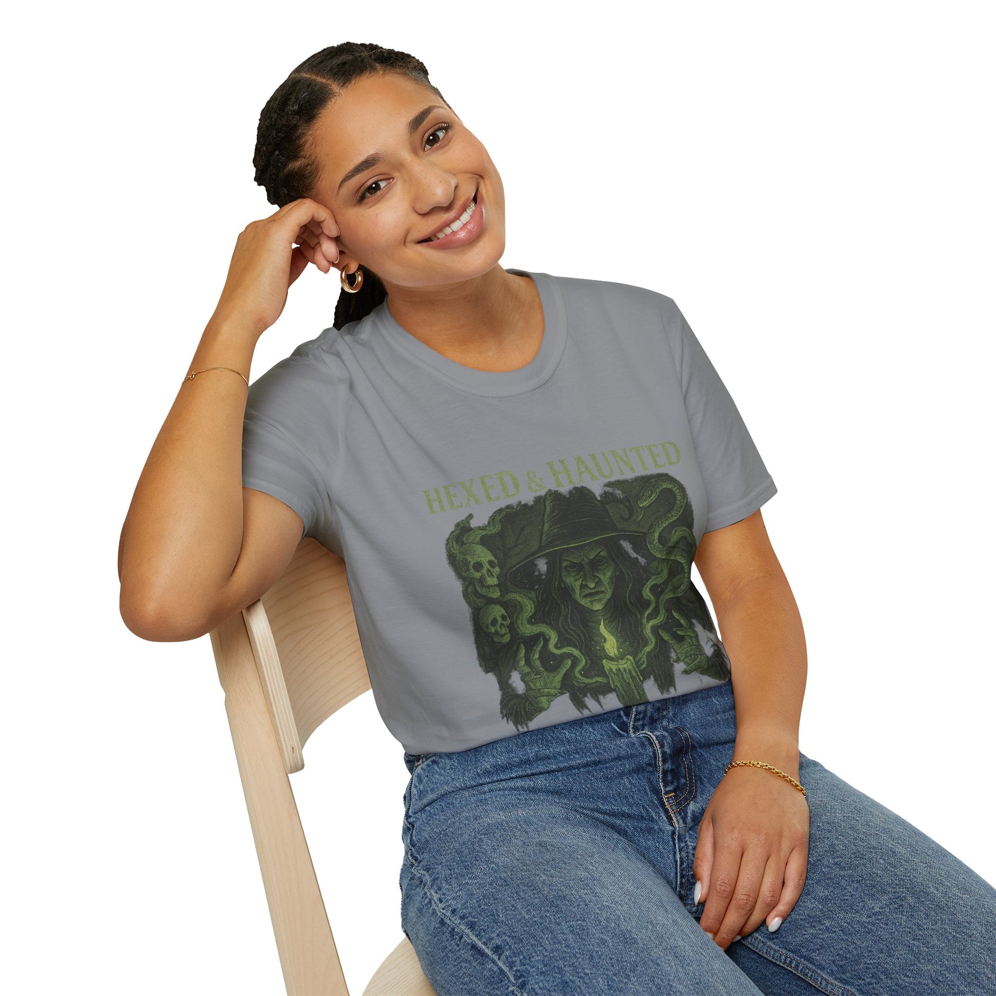 Hexed & Haunted Unisex Softstyle T-Shirt | Witchy Graphic Tee, Halloween Shirt, Spooky Apparel, Unique Gift, Casual Wear