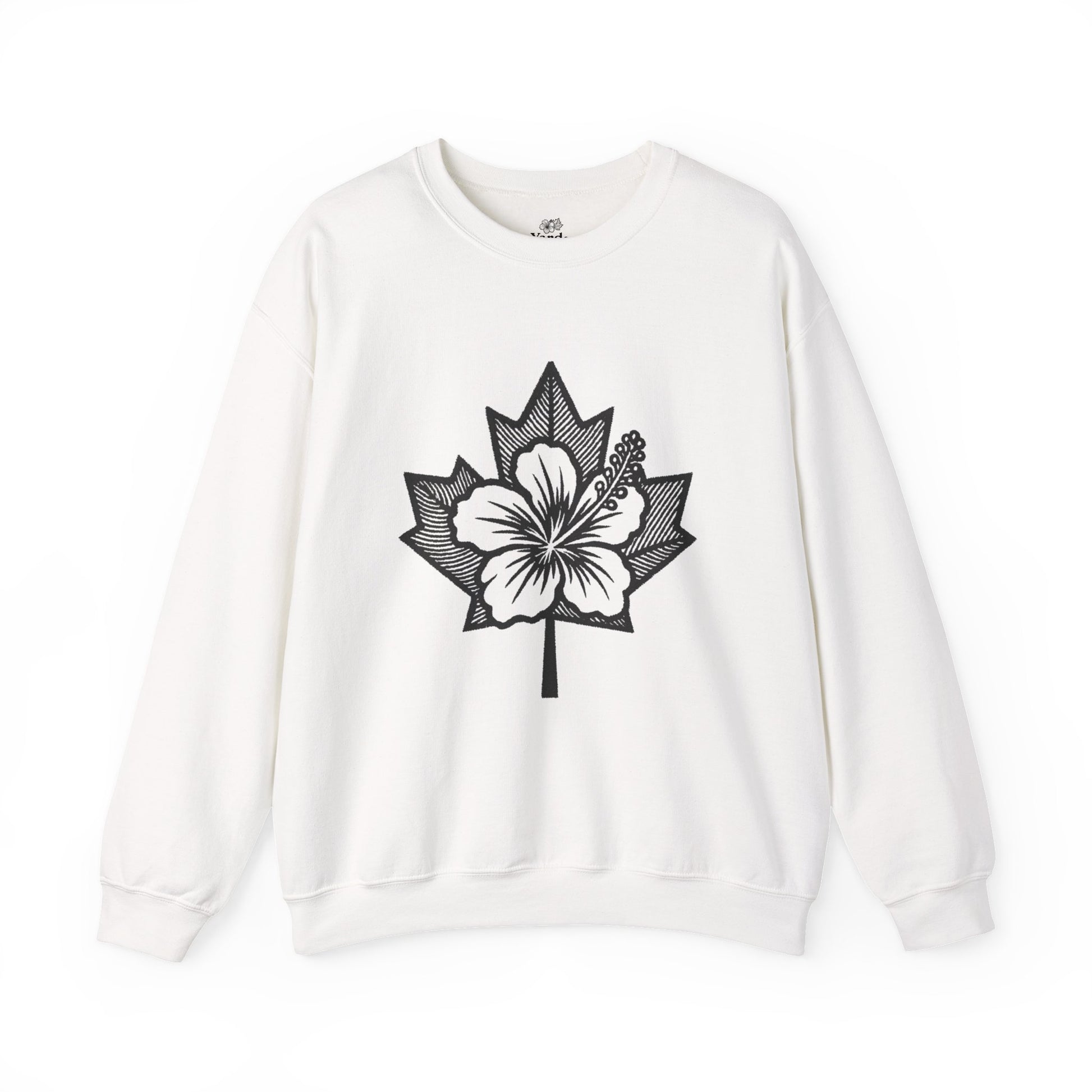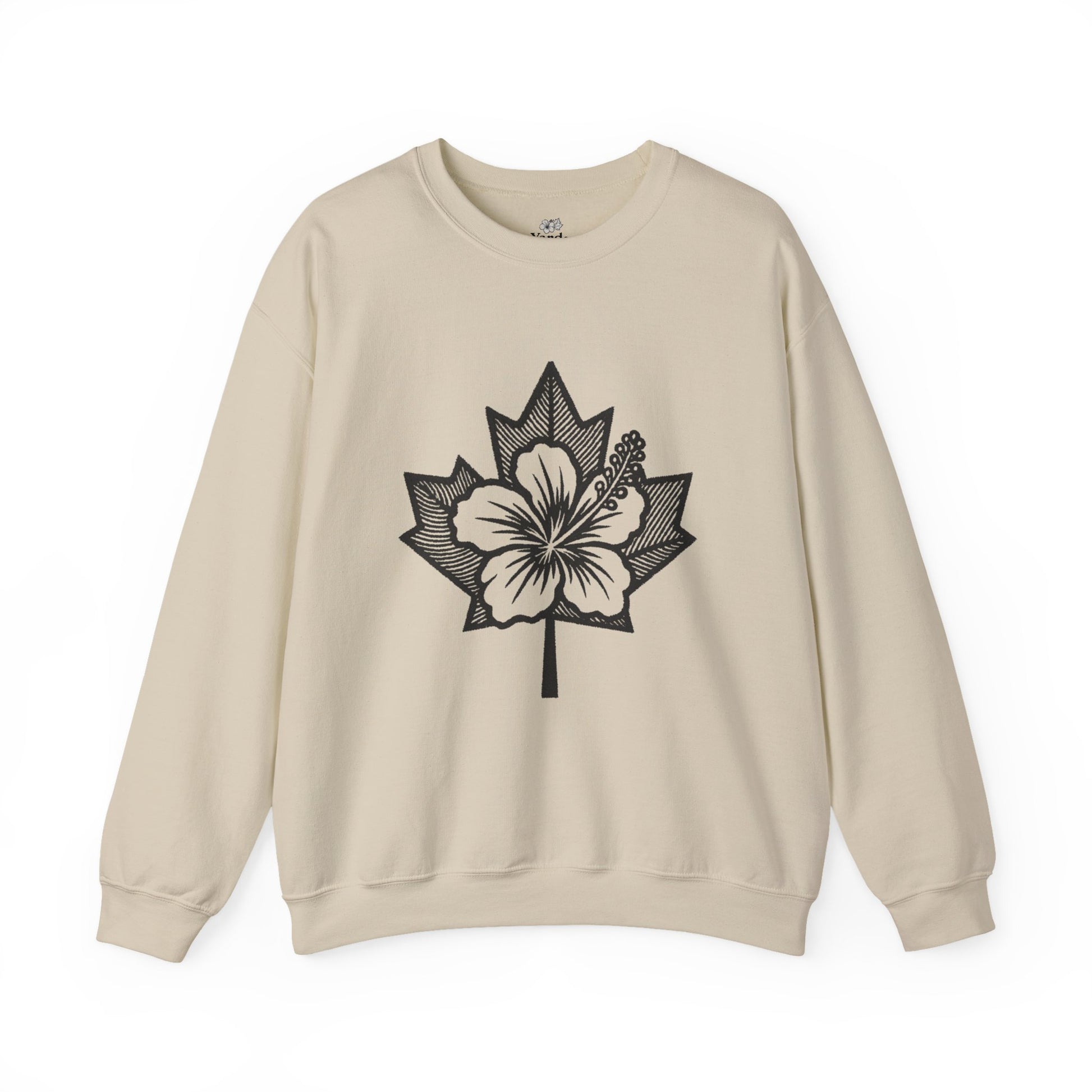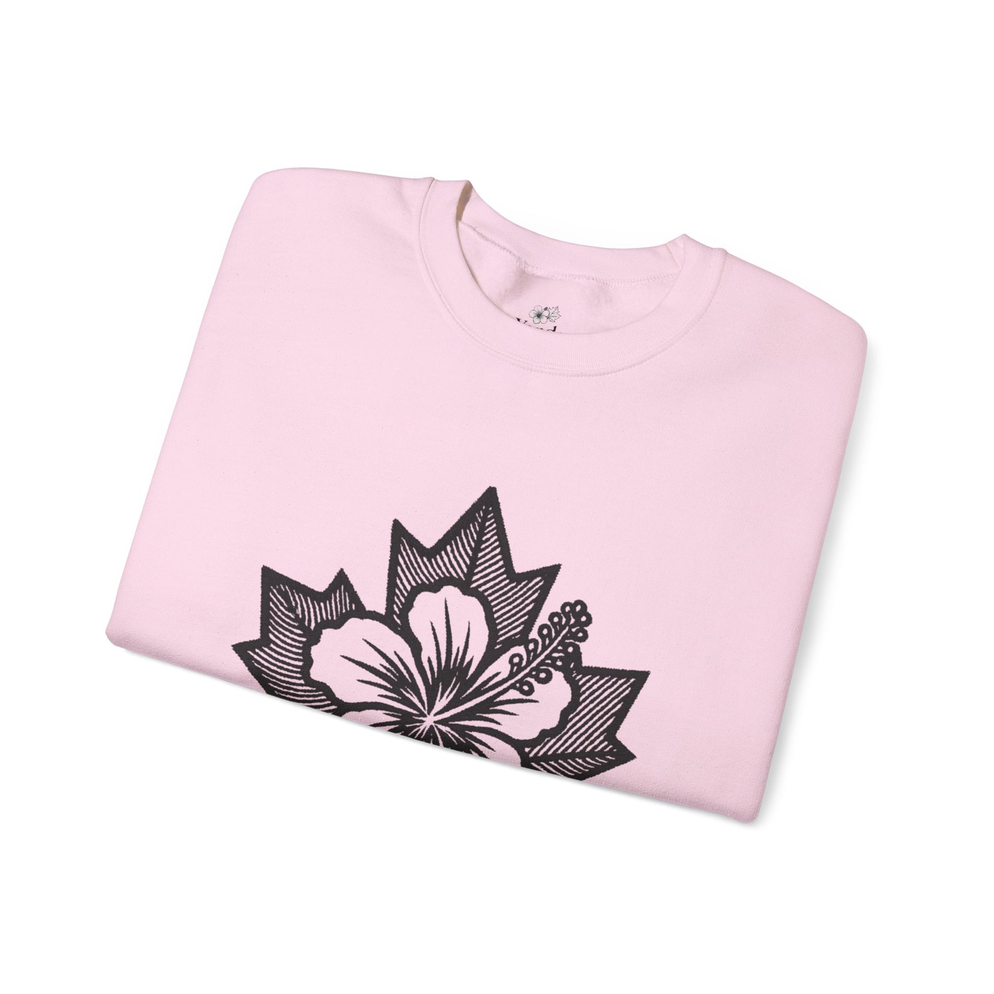 A soft, dependable sweatshirt that brings quiet style to cool mornings and late-night drives. The clean crewneck silhouette wears like a favorite from day one — roomy without being baggy, with sturdy double-needle stitching that holds up wash after wash. A single-line hibiscus set inside a maple silhouette gives the front a calm, graphic look: subtle, botanical, and a little unexpected. Wear it for slow weekends, coffee runs, or layering on windy coastal walks. The breathable 50/50 cotton-poly blend and tear-away label keep focus on comfort, while the ethical cotton sourcing and OEKO-TEX dyes let this piece sit easy in a responsible wardrobe.