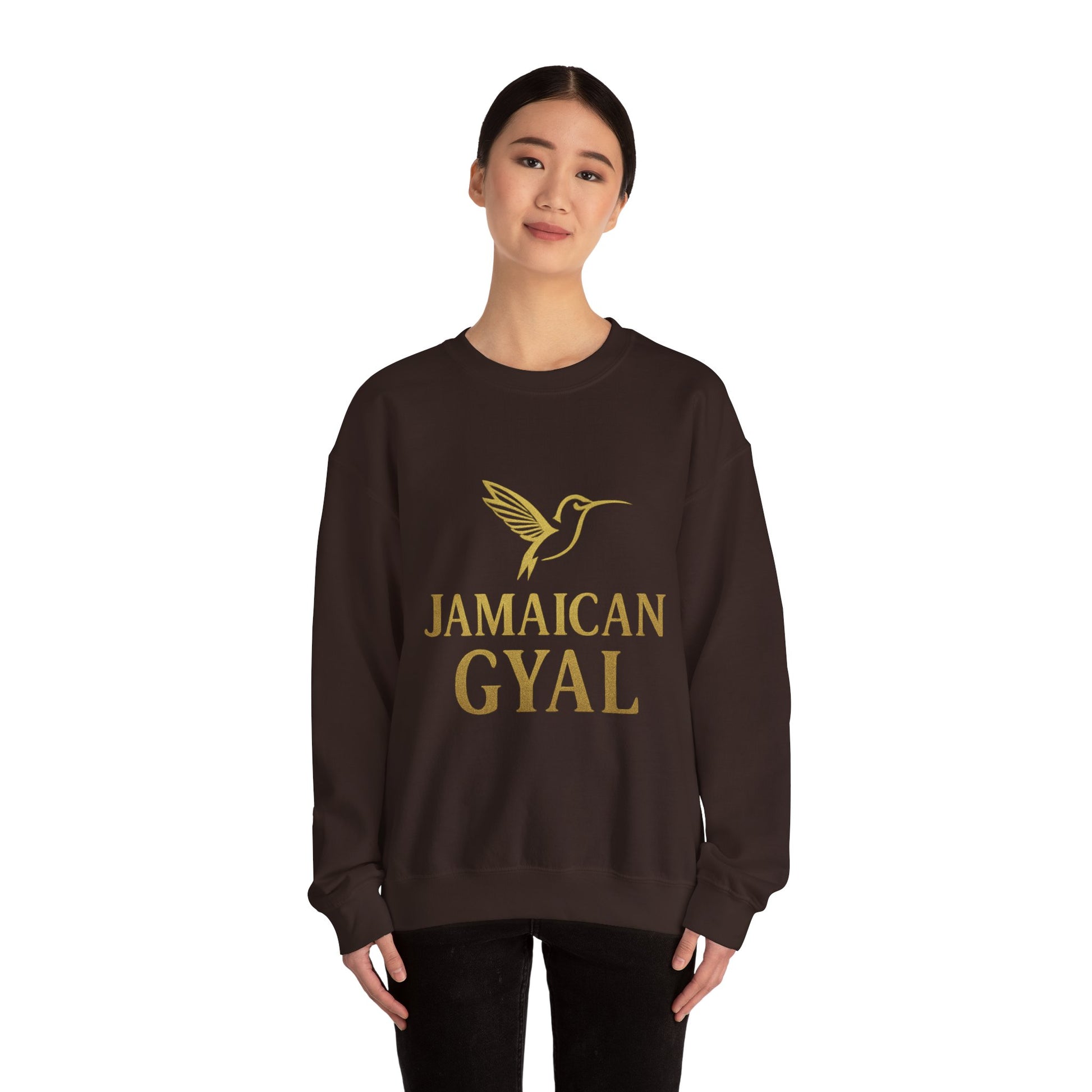 Jamaican Gyal Crewneck Sweatshirt — Gold Hummingbird Graphic