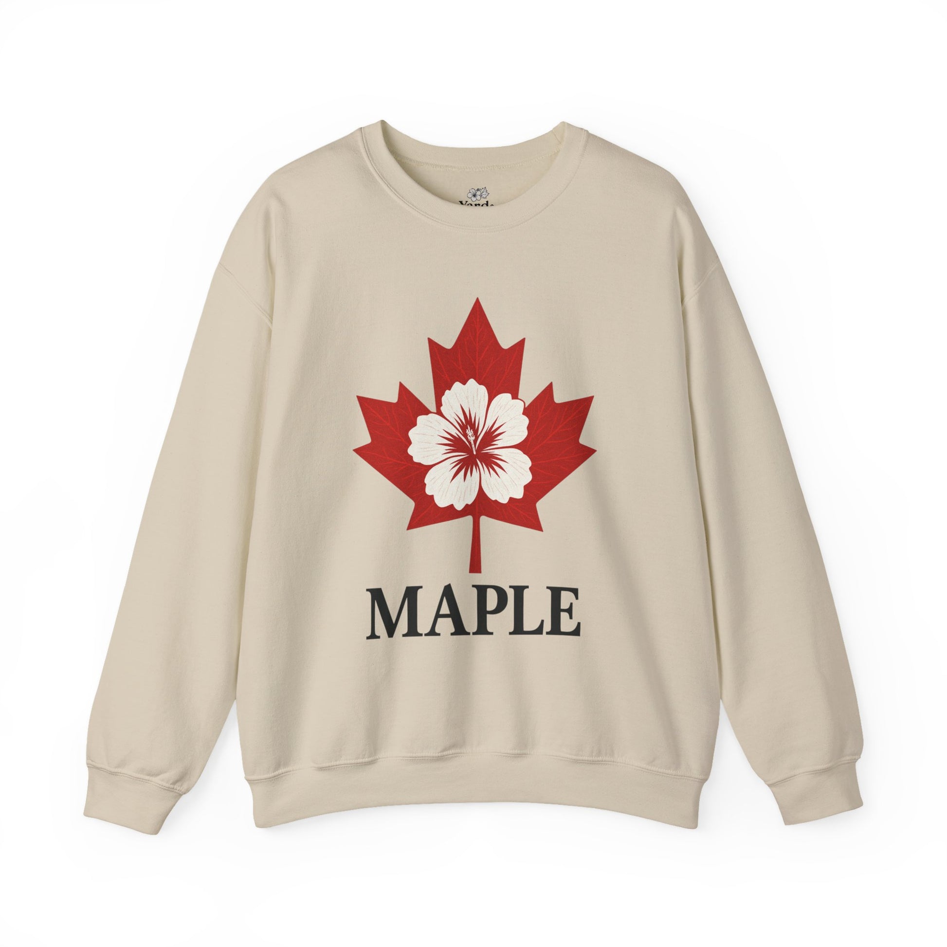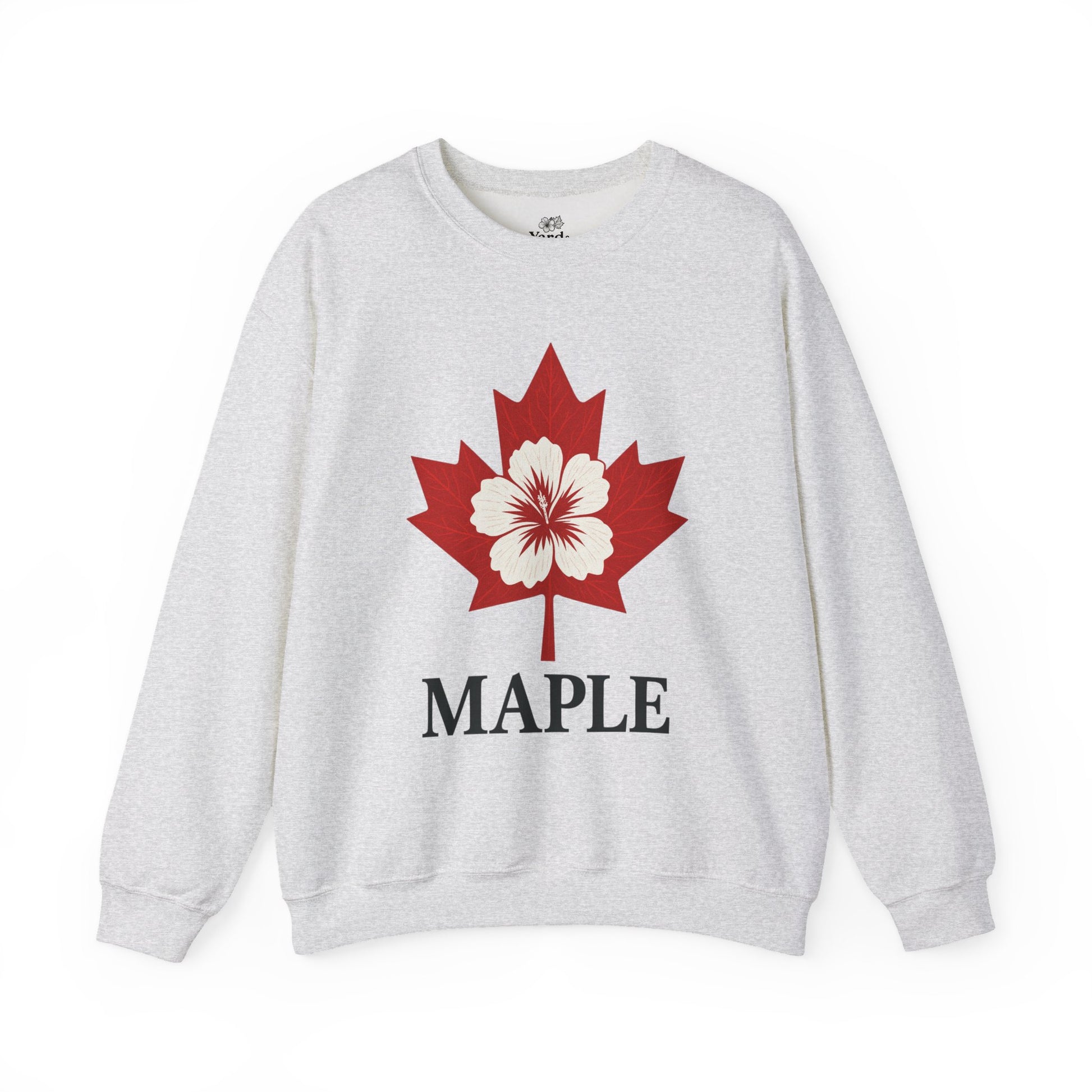 Soft, sturdy, and quietly iconic — this crewneck brings a calm, northern energy to everyday wear. A bold maple silhouette shelters a delicate hibiscus at its center, pairing national symbolism with a gentle, floral touch. The medium-heavy 50/50 cotton-poly blend feels substantial without dragging, and the classic crew cut layers easily over shirts or stands alone on crisp mornings. Double-needle stitching and a tear-away label mean comfort that lasts. Wear it on weekend walks, at casual meet-ups, or while curled up with a warm drink — it feels like a familiar place you return to.
