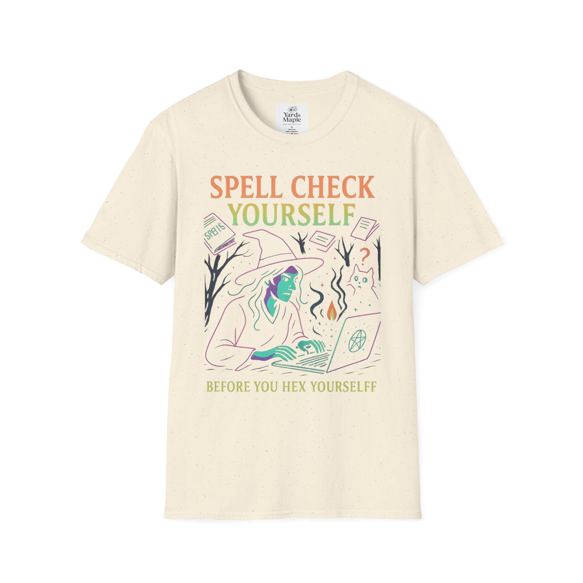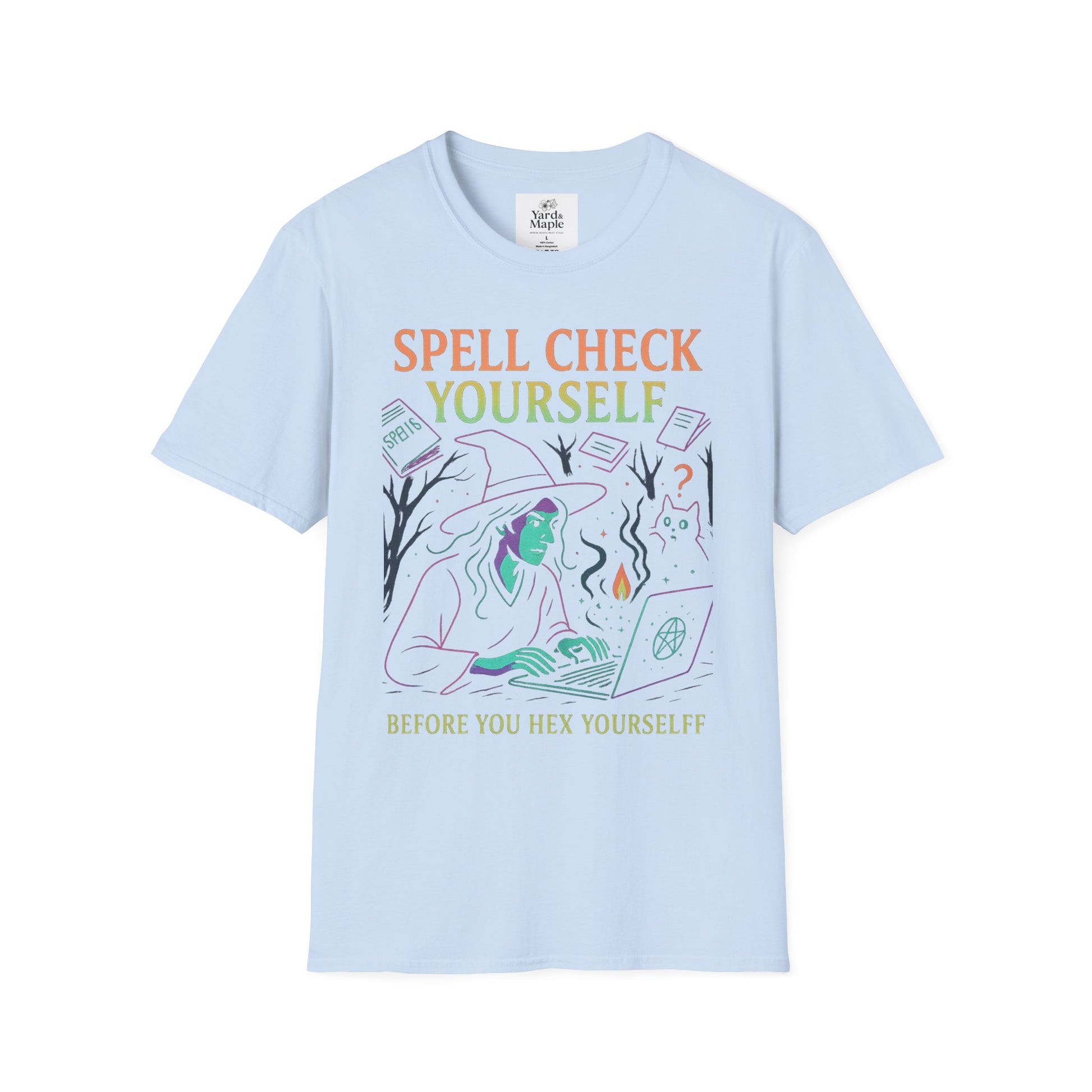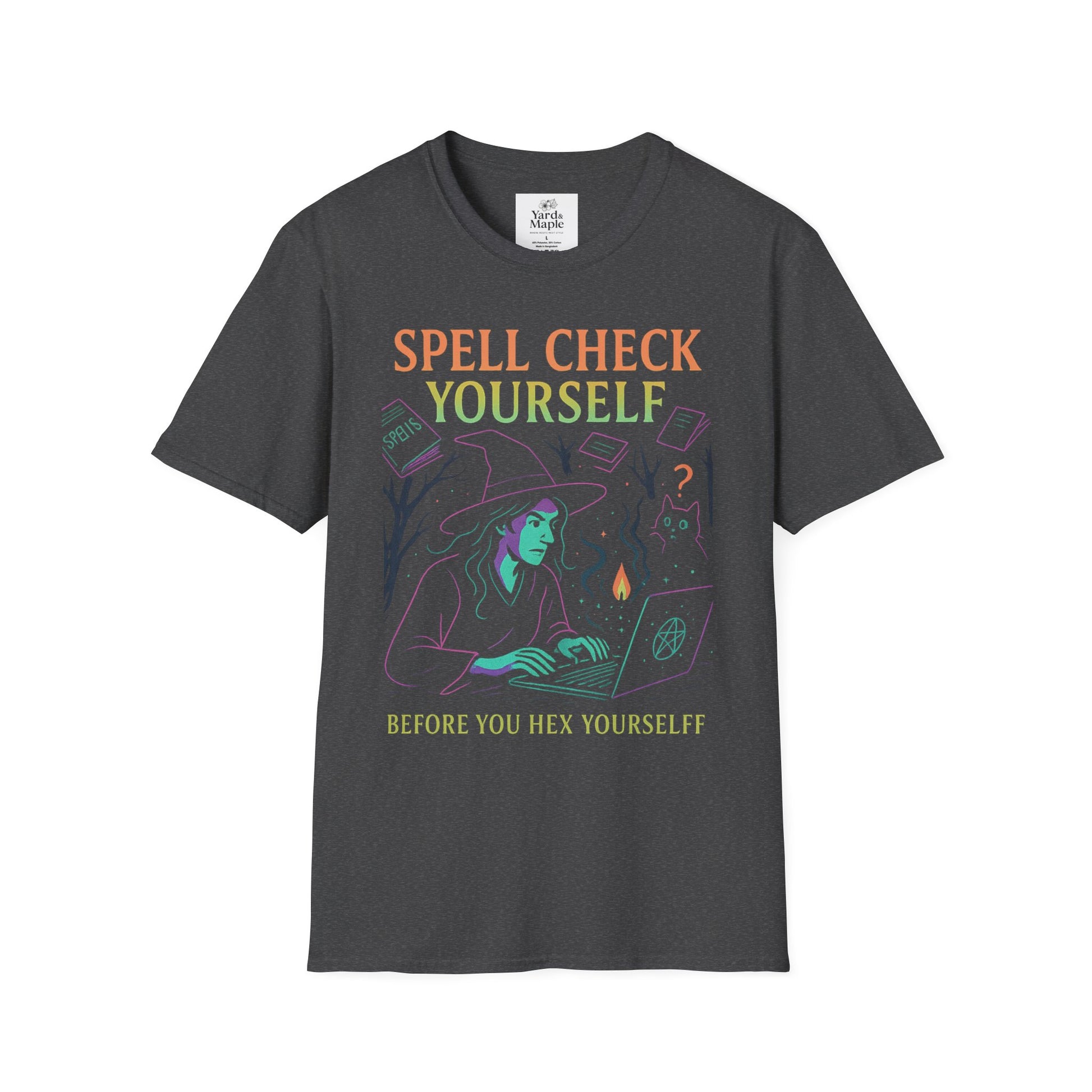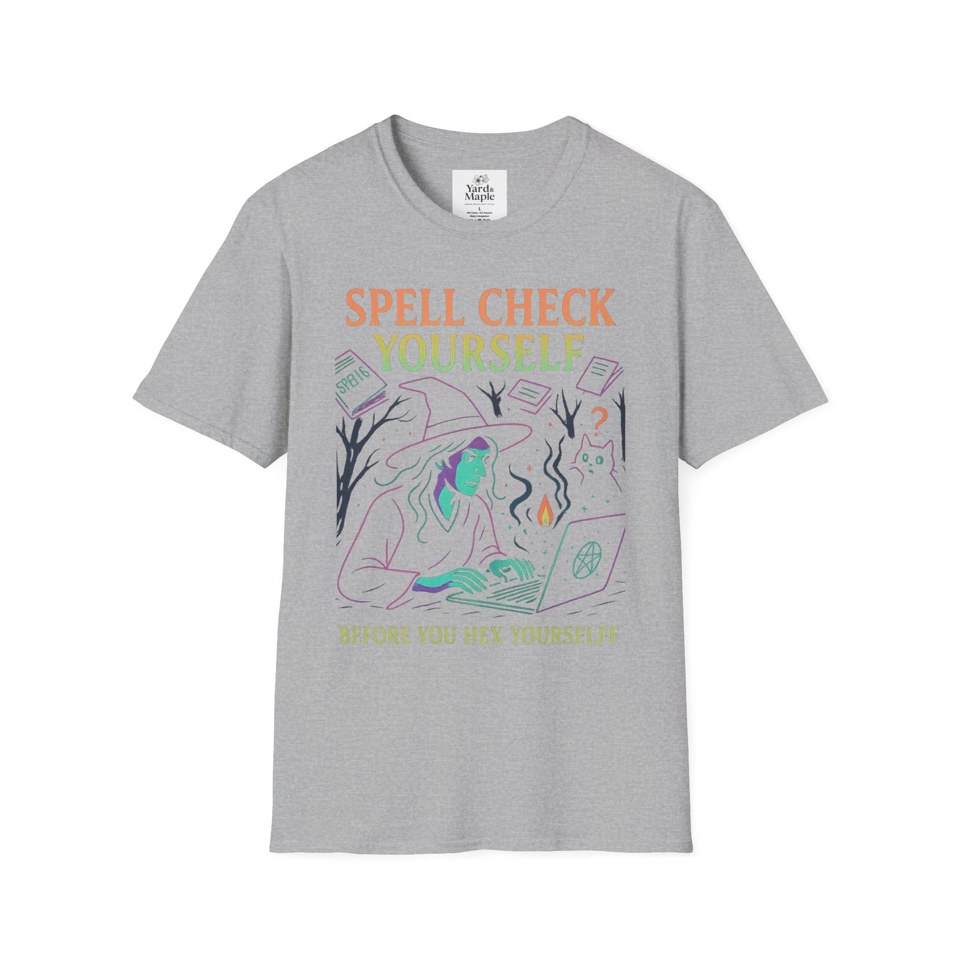 Spell Check Yourself Graphic Tee, Unisex Witch T-Shirt, Halloween Humor Top, Casual Witchy Apparel, Perfect for Spell Lovers