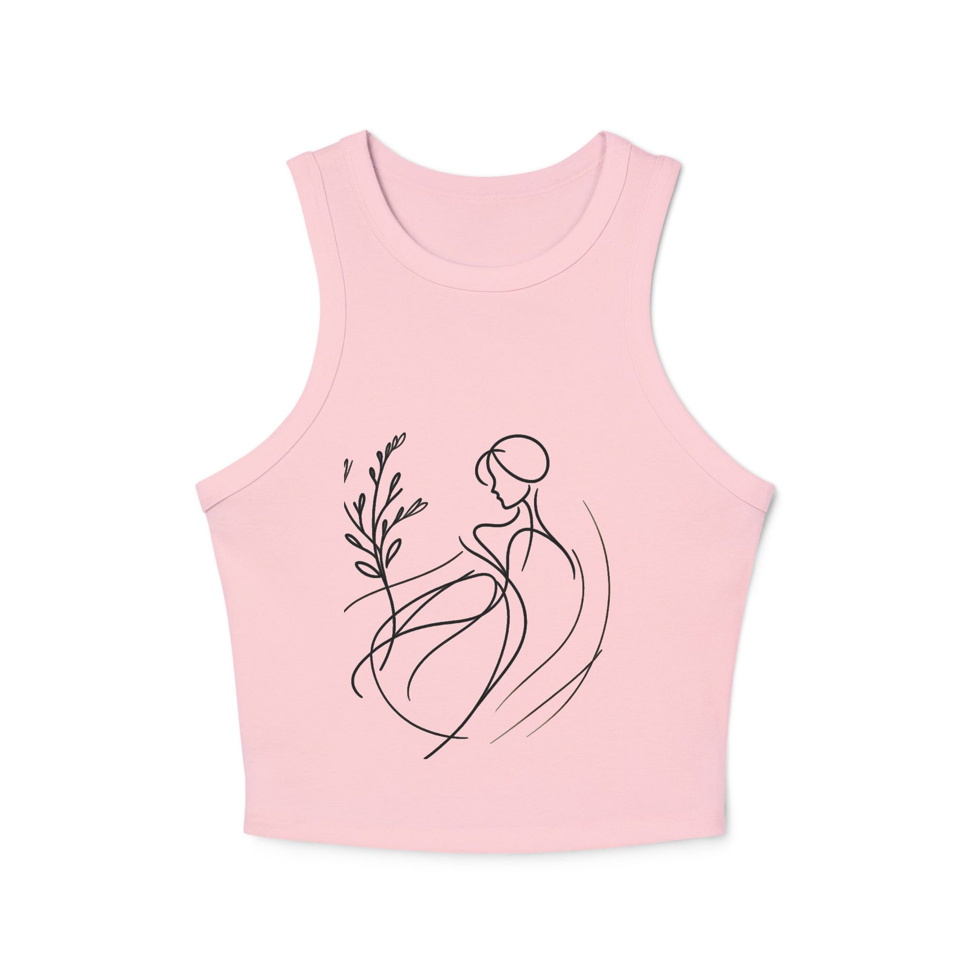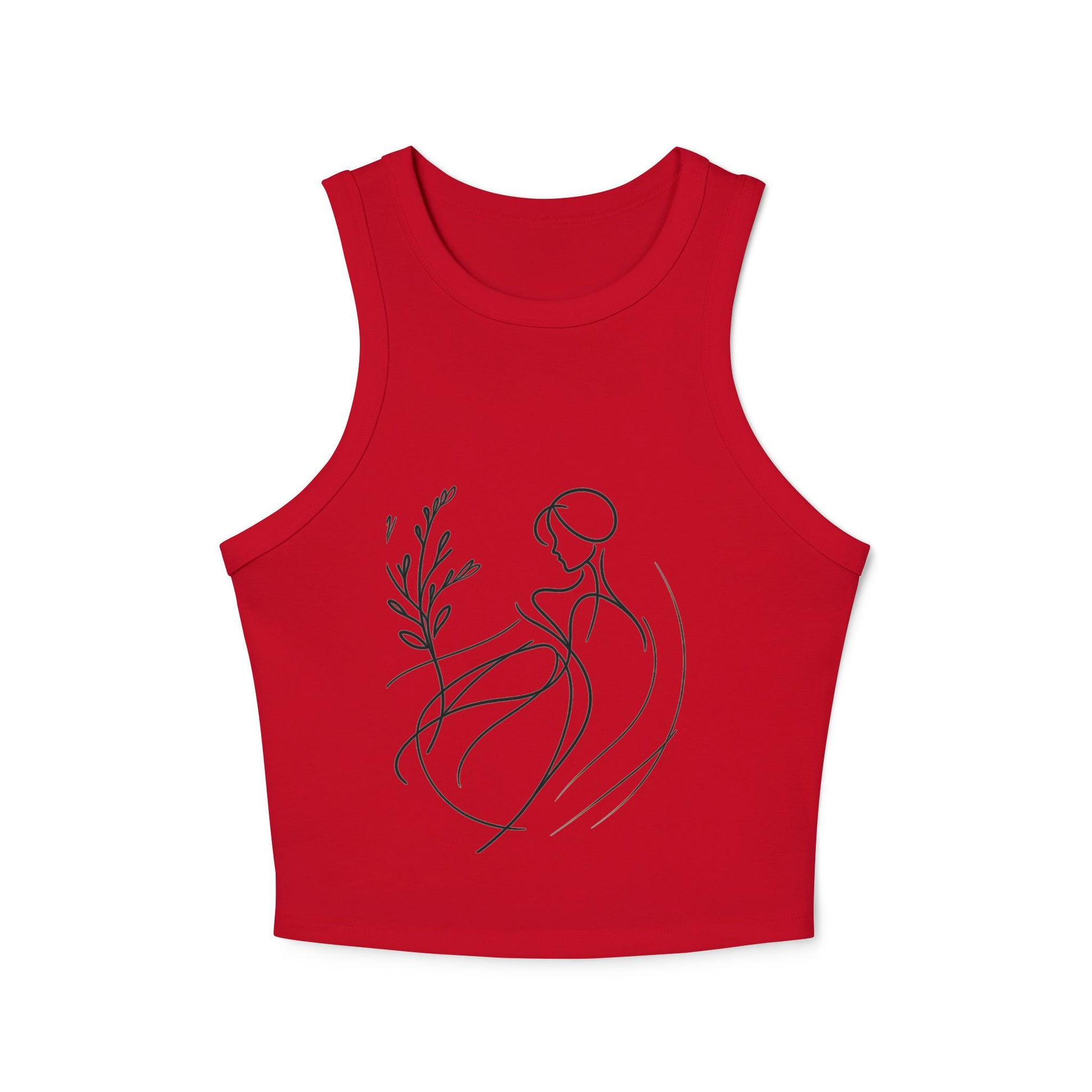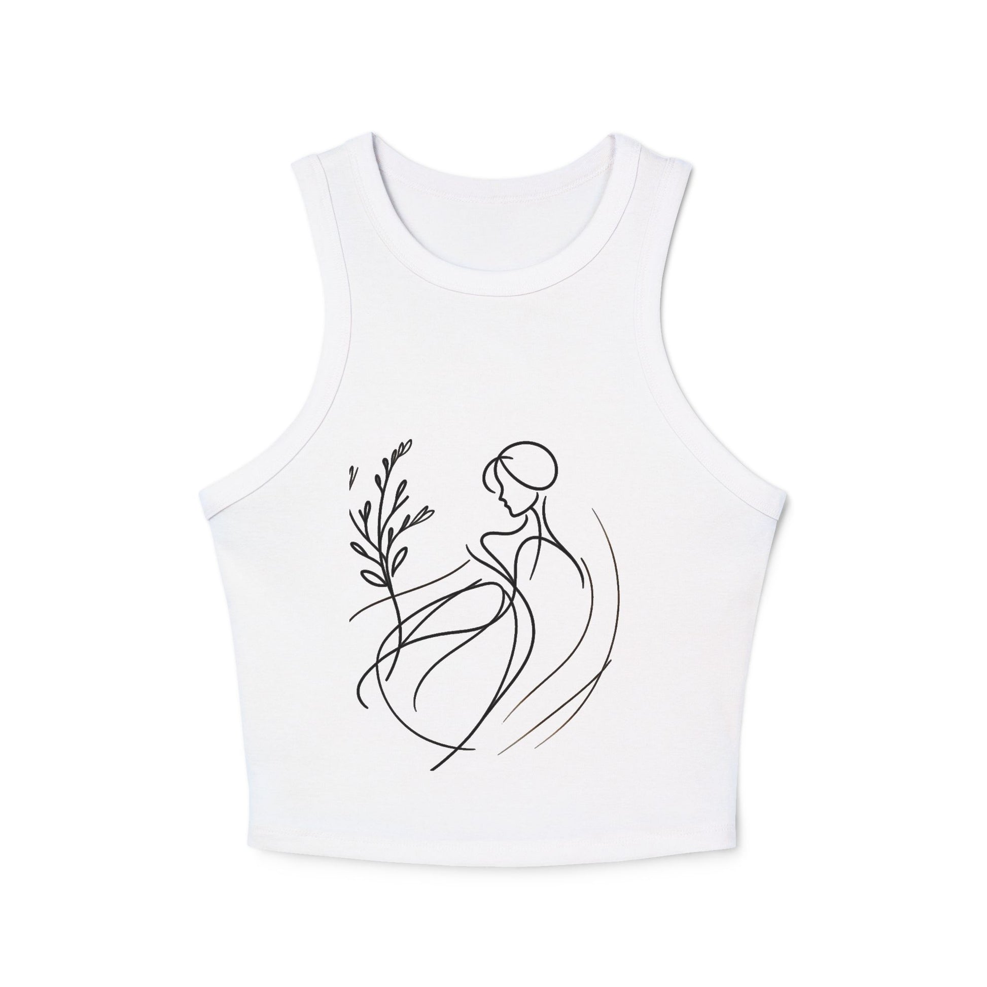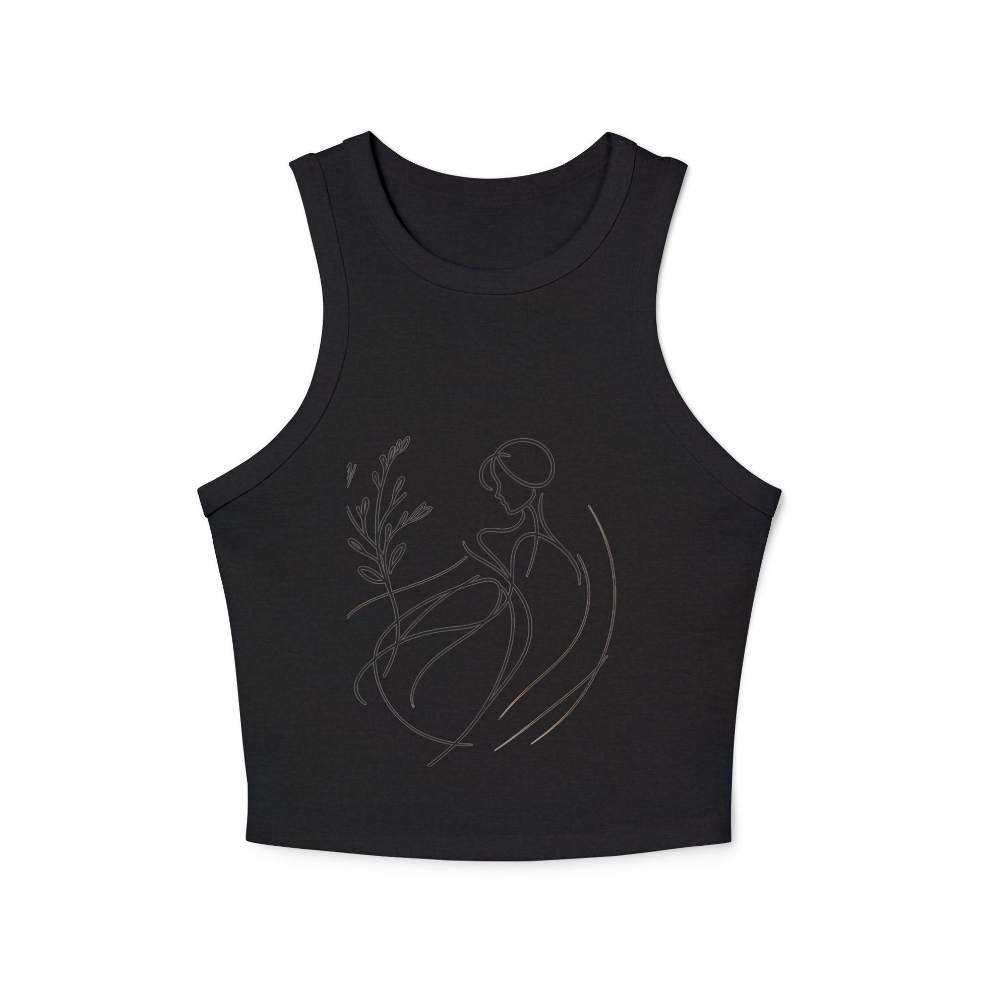 Stylish Women's Crop Tank Top with Floral Outline Design, Summer Essential, Comfortable Casual Wear, Perfect for Yoga, Brunch, or Festivals