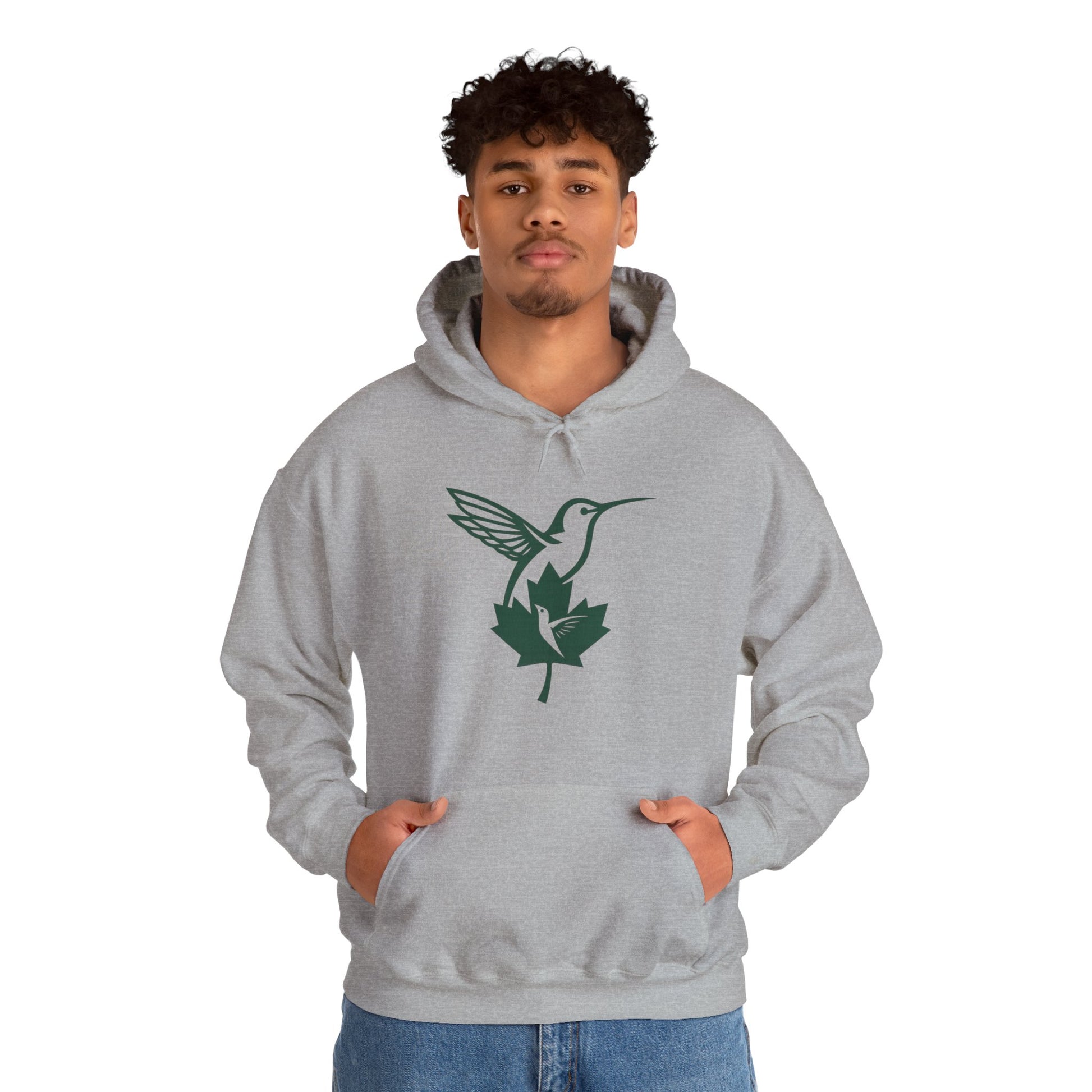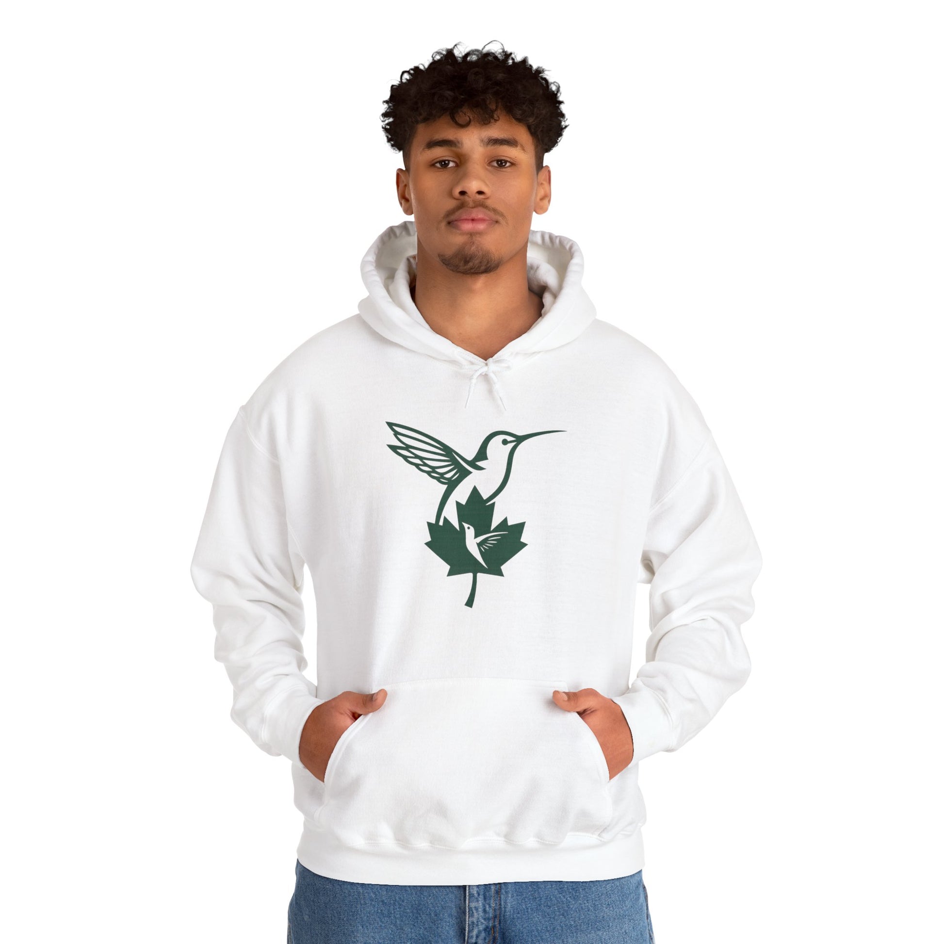 A soft, mid-weight hoodie that feels like a quiet morning walk through pine and maple. The centered hummingbird and leaf emblem is simple and elegant—small enough to wear every day, bold enough to anchor your outfit. The roomy kangaroo pocket and double-lined hood pull warmth around you when the wind cuts through, while the tear-away label keeps the neck itch-free. Built from a durable cotton/poly blend with clean finishes and sustainable sourcing, this hoodie blends effortless style with practical comfort for cooler days and slow moments.